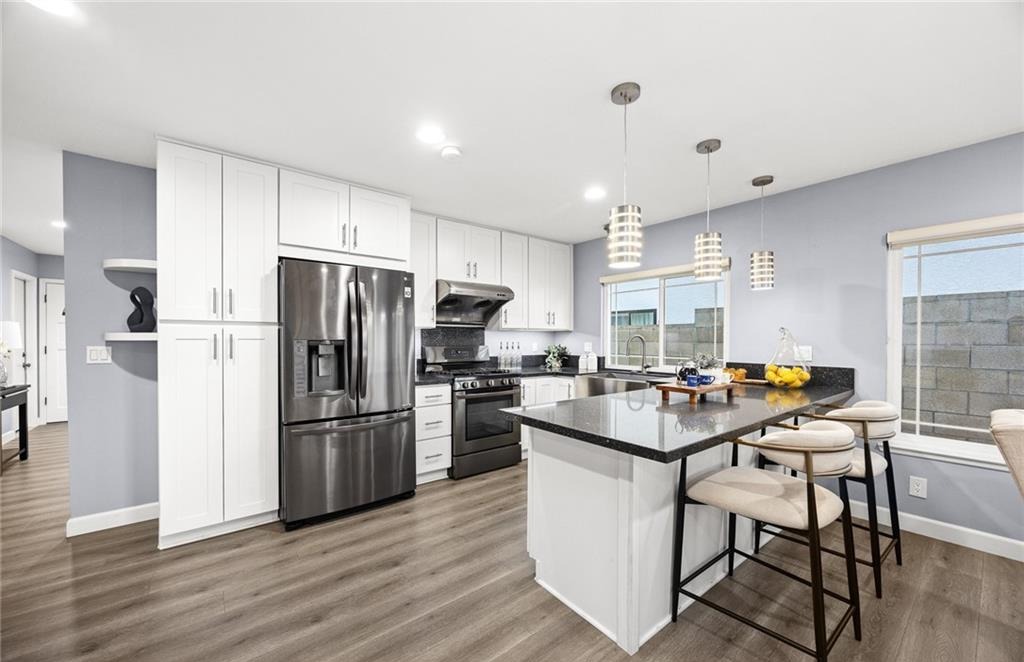 Welcome to this warm and beautifully remodeled 3-bedroom, 2-bath home, offering a highly functional layout with one en-suite bedroom. The home has been substantially upgraded throughout, providing a comfortable and modern living experience. Entering through the inviting covered front porch, you’re greeted by the formal living room, brightened by the natural light from the new oversized double-pane windows. The open kitchen connects seamlessly with the dining area and offers a pleasant backyard view, perfect for everyday living and gatherings. The kitchen has been fully updated with high-quality cabinets, beautiful quartz countertops, a center island, and newer stainless-steel appliances. Along the dining area, a sleek built-in wall cabinet with matching countertops adds extra storage and style. All three bedrooms are generously sized with well-proportioned layouts and ample closet space. Both bathrooms have been updated for comfort and modern appeal. The master suite, located privately at the end of the hallway, features an awning added right outside the windows to enhance the cozy and sheltered feel of the space. The Major improvements include Brand-new roof, New oversized high-quality double-pane windows and sliding door, new trendy laminate flooring throughout, modern recessed lights, Fresh interior and exterior paint, updated kitchen and bathrooms, newer appliances, Central A/C and heating Professional low-maintenance landscaping The charming, covered patio adds meaningful value to this home. Directly connected to the home, it enhances the indoor-outdoor flow and creates an ideal setting for entertaining family and guests. The peaceful backyard features vibrant flowers, lush greenery, and a well-kept lawn—providing plenty of space for gatherings, relaxation, and everyday outdoor enjoyment. Additional features include a spacious two-car garage with direct access, EV-charger ready, abundant storage, and a convenient driveway for easy in-and-out parking. The home is situated in a highly convenient and welcoming Hacienda Heights neighborhood, close to schools, shopping, parks, and essential amenities. This move-in-ready sweet home combines comfortable living, quality upgrades, easy maintenance, and an excellent location—truly a standout property ready for its next chapter.