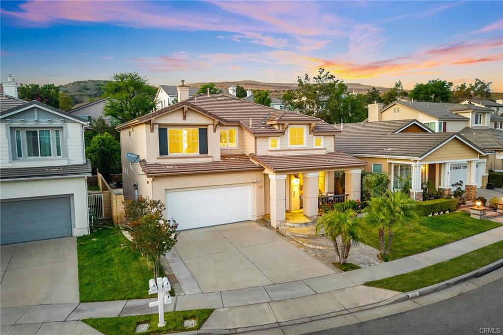 Nestled on a quiet cul-de-sac in the highly sought-after Olinda Ranch community, this beautiful Shea-built residence offers the perfect combination of comfort, elegance, and functionality. With nearly 2,600 square feet, this home features 4 spacious bedrooms, 3 full bathrooms, and a versatile layout ideal for both everyday living and entertaining. Step inside to be greeted by an impressive two-story ceiling in the formal living room, creating a sense of openness and grandeur. Oversized modern windows flood the space with natural light, enhancing the warm, inviting atmosphere. The formal living and dining areas seamlessly flow into the open-concept kitchen, complete with a functional center island, stylish backsplash, and light-toned cabinetry. The kitchen opens to a cozy breakfast nook and an adjacent family room with direct views of the professionally landscaped backyard and serene natural hillside backdrop. The backyard is thoughtfully designed for enjoyment and relaxation, featuring a covered patio and a custom putting green, ideal for gatherings, entertaining guests, or simply unwinding outdoors. Upstairs, you’ll find a versatile sky loft—perfect as a home office, play or lounge area. All four bedrooms are generously sized, with the primary suite offering vaulted ceilings, a spa-inspired en-suite bathroom with a separate shower and bathtub, a spacious walk-in closet, and peaceful views of the backyard and surrounding neighborhood. Additional highlights include: Attached 2-car garage with epoxy-coated flooring and ample storage space. Fresh interior paint throughout. Brand new water heater. Updated cabinetry in modern color tones. Central A/C for year-round comfort. Olinda Ranch is renowned for its peaceful setting, scenic walking trails, community parks, and access to award-winning Brea Olinda Unified schools. the neighborhood offers the charm of newer homes in a tranquil and convenient location. Enjoy the best of Brea living with close proximity to shopping, dining, and major freeways. This is a home you truly won’t want to miss—schedule your private tour today!